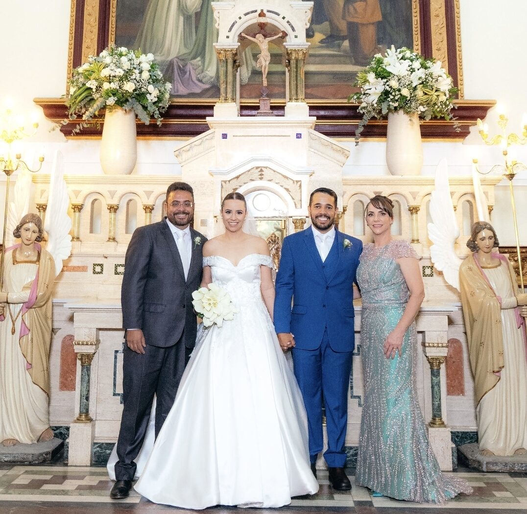 O casal Sandro Juliano e Luciola Vitória, na noite do último dia 04.07. Na foto do casamento da filha Anna Vitória e Juarez Alves Lima na igreja Ateneu Don Bosco, a noiva vestiu um lindíssimo vestido da grife Maísa Gouveia