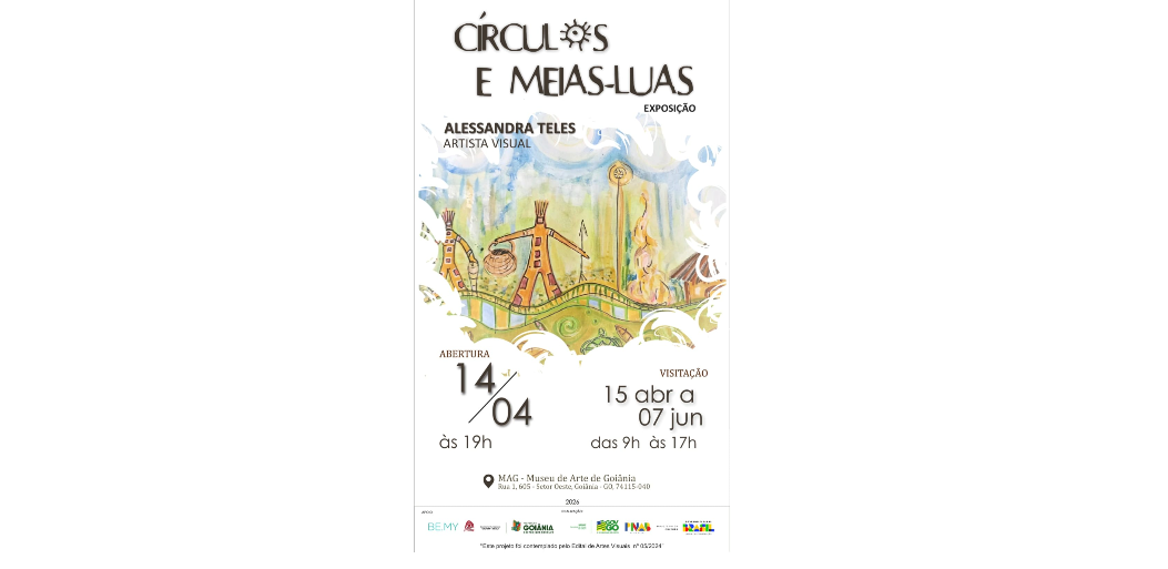 A artista visual Alessandra Teles abre ao público, no dia 14 de abril, às 19h, a exposição “Círculos e Meias-Luas”, no Museu de Arte de Goiânia (MAG). A mostra segue em cartaz até o dia 7 de junho, com visitação gratuita de segunda a sexta, das 9h às 17h.