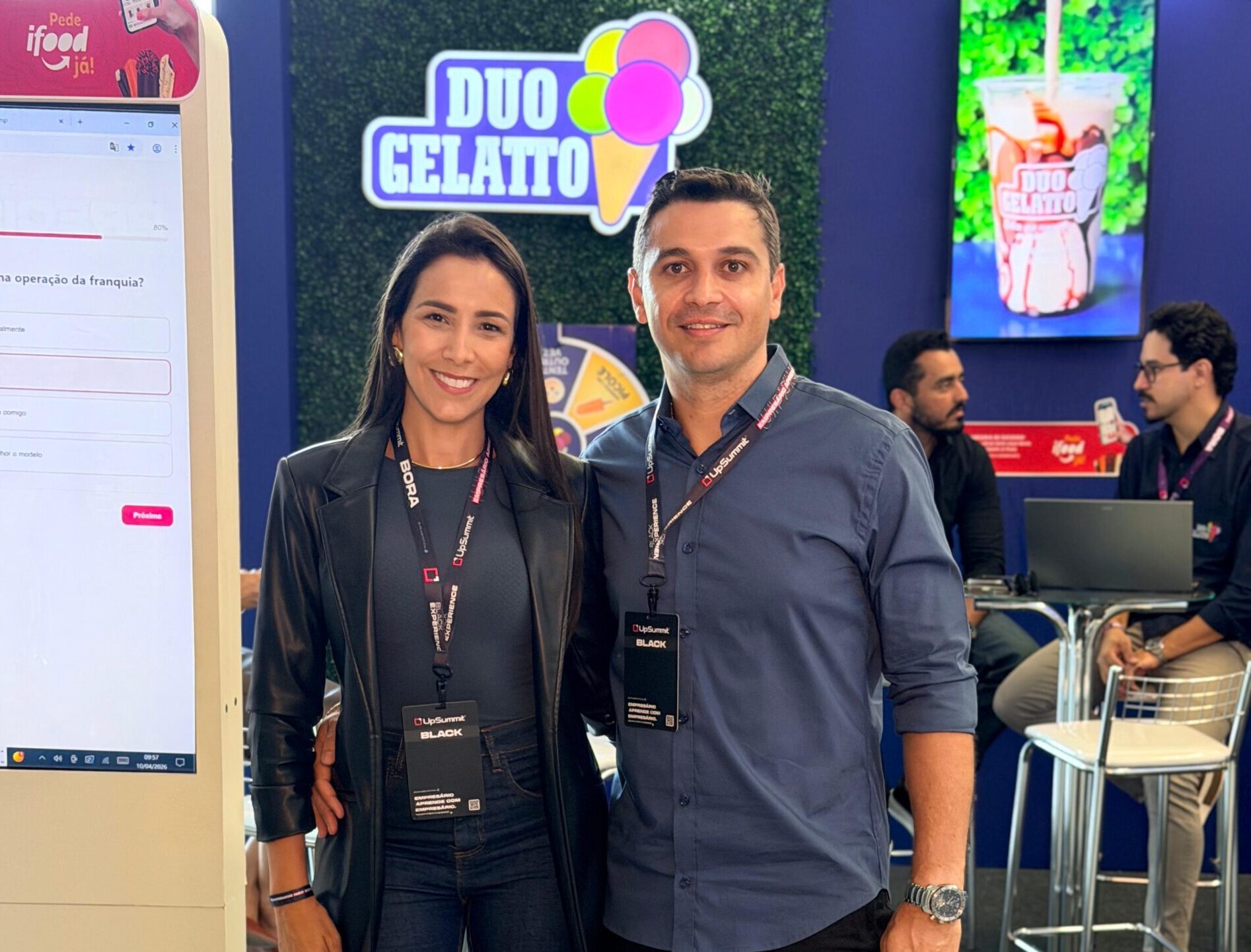 A empresária Rafaela Bernardes, jornalista por formação e atualmente à frente de sua franquia da Duo Gelatto, marcou presença no UP Summit, realizado em Goiânia. Ao seu lado esteve o empresário Rafael Borges, sócio-proprietário da Duo Gelatto, reforçando a atuação estratégica da marca dentro do evento.