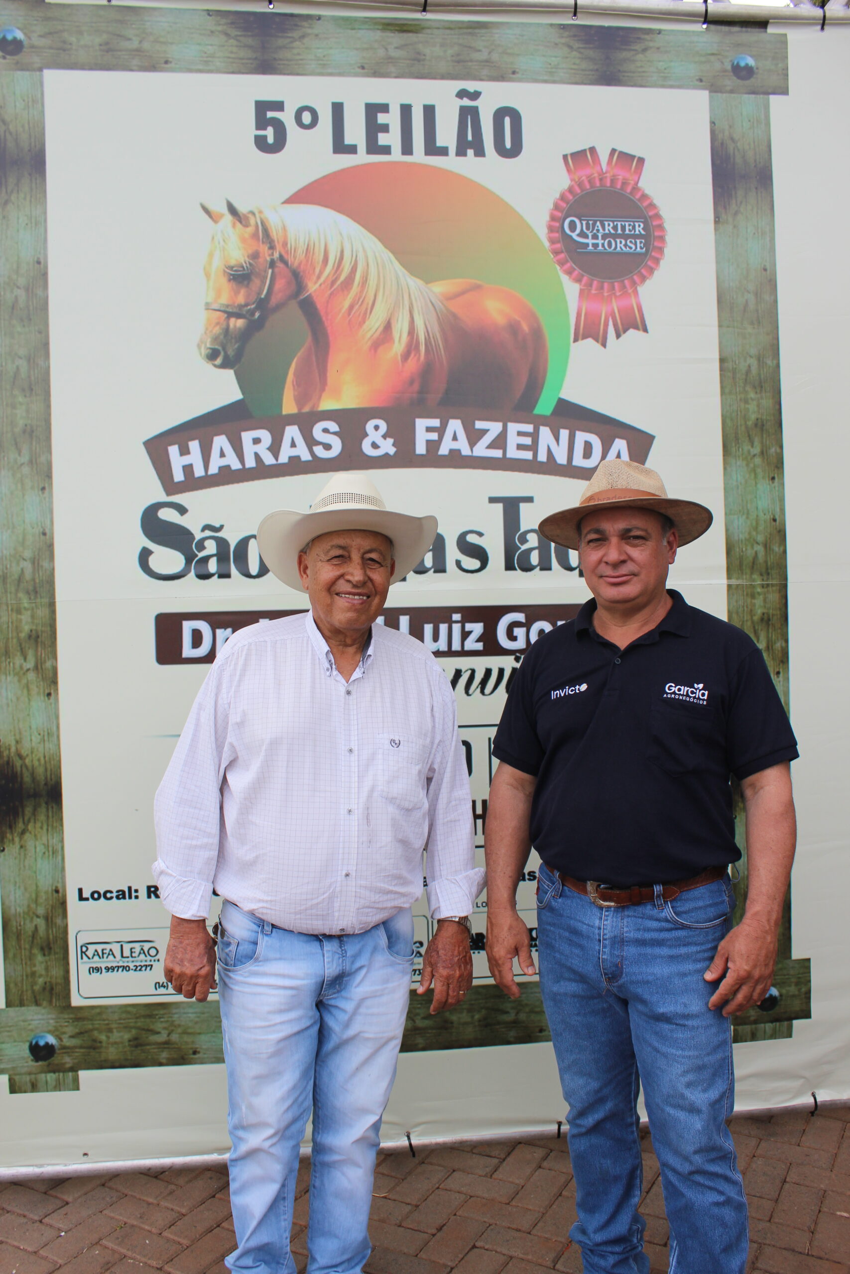 Eweraldo Garcia, representando a Garcia Agronegócios e, o senhor Antônio do Ico, ex-presidente do Sindicato Rural de Itumbiara, prestigiaram a 5ª edição do Leilão do Haras & Fazenda São Judas Tadeu. Referências no agronegócio regional, participaram com destaque no evento que reuniu empresários e autoridades, grandes investidores e apaixonados pelos cavalos de raça.