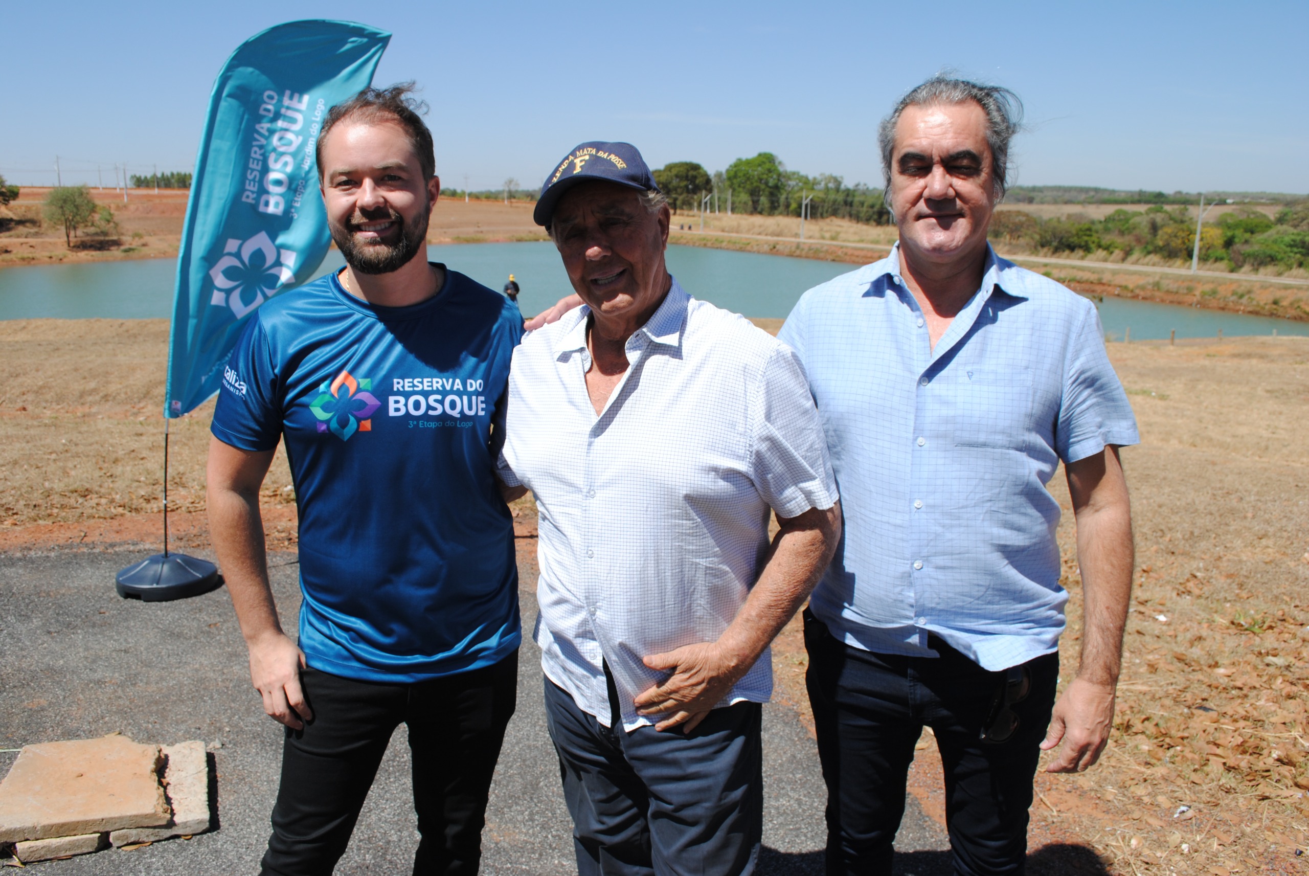 O Fundador da Localiza Urbanismo, Jorivê Tavares (centro), e os diretores da empresa, Danilo Tavares (esquerda) e Renato Tavares (direita), apresentaram ao mercado imobiliário a terceira e última etapa do Reserva do Bosque, bairro planejado em Abadia de Goiás. Os lotes estão no local mais especial do bairro, no entorno do primeiro parque urbanizado da cidade, com um lago no centro.