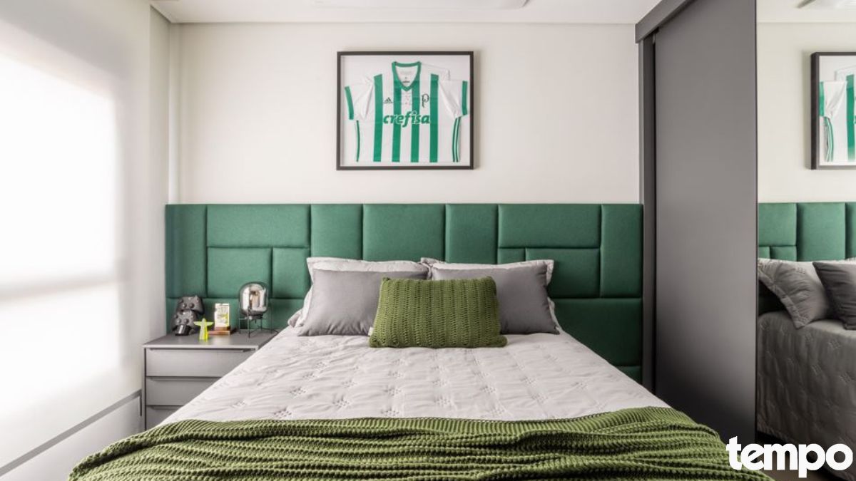 Uma cabeceira de cama em tom de verde é uma opção sofisticada para renovar o visual do quarto, em tons de verde esmeralda ou musgo, em acabamentos foscos ou polidos e em revestimentos de madeira ou veludo, o profissional do BMA Studio diz que a cabeceira verde acrescenta um ponto focal no dormitório e um clima de relaxamento.