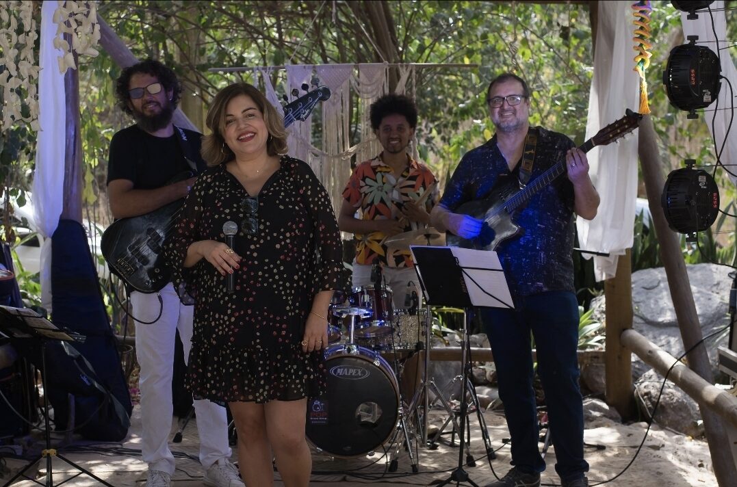 No último sábado (16), a cantora e compositora Viviane Vaz encantou o público no espaço Nossa Praia, anexo ao tradicional Buteko do Chaguinha, na charmosa cidade histórica de Pirenópolis e foi acompanhada por um trio de músicos de excelência: Front Jr. (guitarra), Leo Araújo (baixo) e Muryllo Pacheco (bateria com riqueza da música regional.